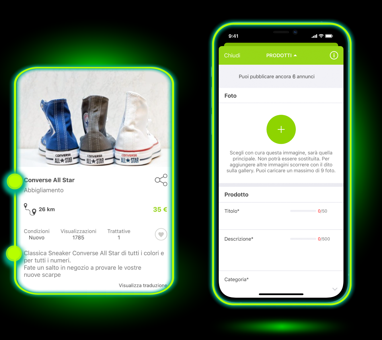 VENDIDopo aver inserito le immagini, racconta a parole il tuo prodotto o servizio: inserisci un titolo e scrivi una descrizione accurata di ciò che stai vendendo, con tutti i dettagli che potrebbero risultare utili al cliente.